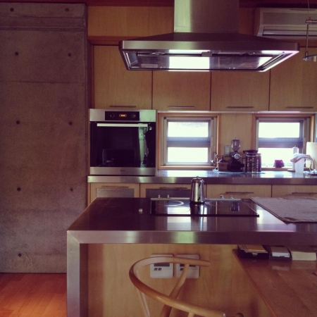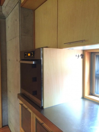 宮崎市の住宅の既存のキッチンのカウンター上にMieleの電気オーブンの取り付け工事で周りの囲いを製作、取り付けしました。