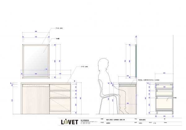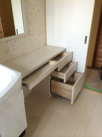 宮崎市の住宅の脱衣所にメイク用の机を製作しました。
