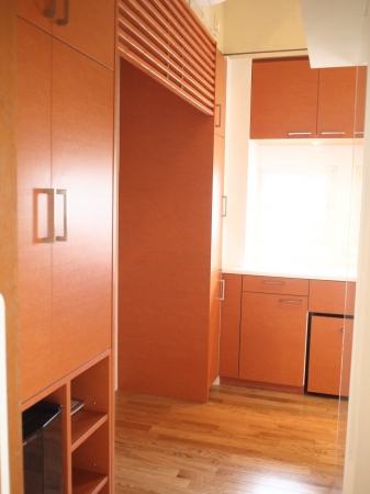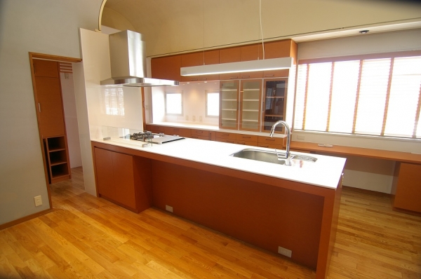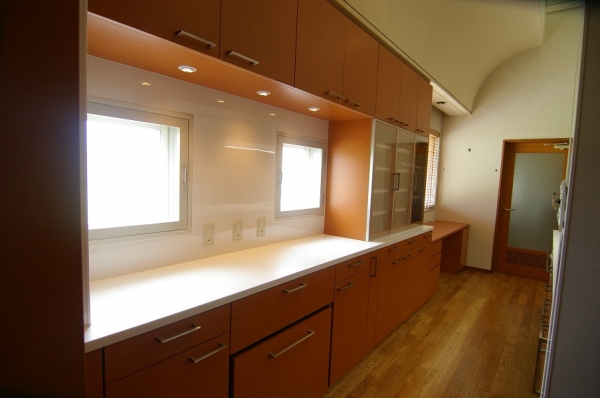 ダイニングキッチンのリフォーム工事。 オーダーキッチン、カップボード、冷蔵庫収納、デスクなどを製作 建築工事 KuRoGi技研