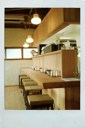 うどん茶房 ふなや http://www.kitenn.jp/funaya/ 清武町沓掛に移転した「うどん茶房 ふなや」さんの店内のカウンターや本棚、建具を製作。 釜揚げうどんがとても美味しいです。